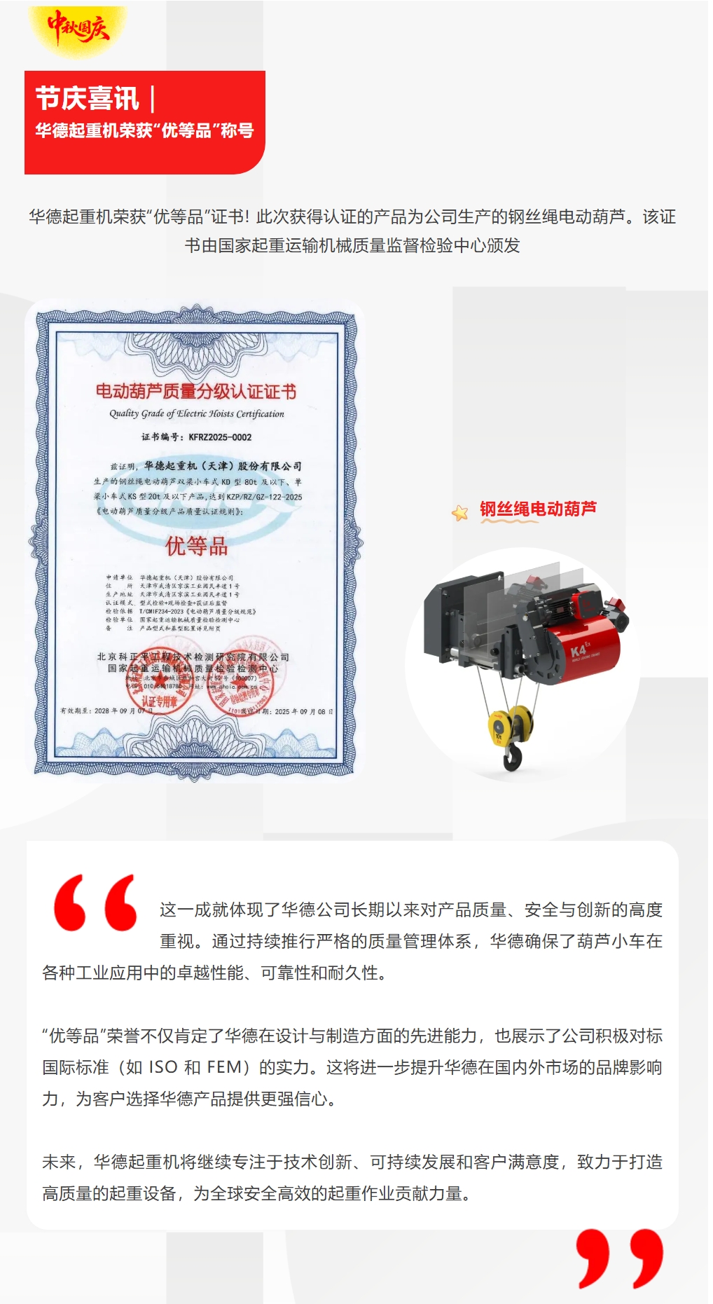 · 華德起重機榮獲“優(yōu)等品”認證